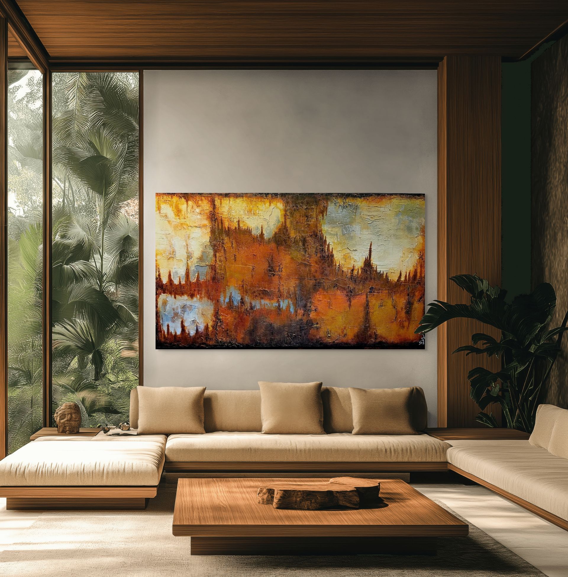 Transport yourself to the stunning landscapes of Arizona with our captivating artwork inspired by the Saguaro Caverns. This large, textured abstract piece invites you to gaze into the beauty and mystery of nature, with its intricate caverns patterns that echo the natural formations found in the iconic desert region. The rich palette of bold rusts, deep browns, and earthy tones harmoniously blend to create a striking visual impact that adds a touch of sophistication to any space. Ideal for those looking to infuse their home with a sense of adventure and depth, this artwork is more than just a decoration; it’s a conversation starter that will enchant your guests and transform your living area into a serene oasis. Elevate your home’s ambiance with this stunning piece that truly offers the wow factor you’ve been searching for!